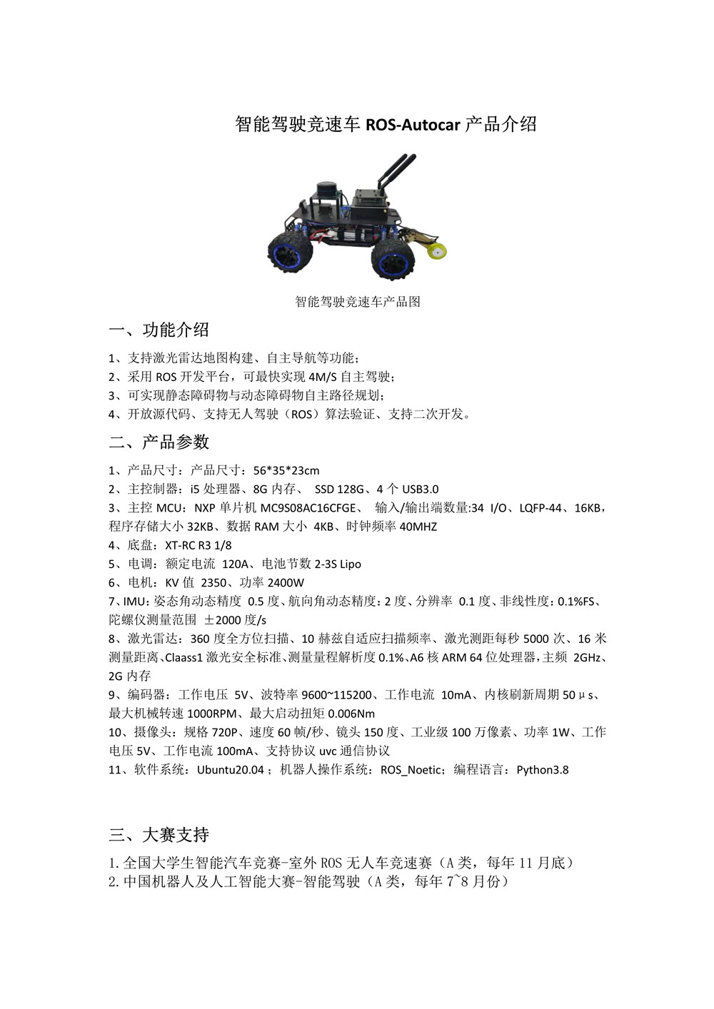 智能驾驶竞速车ROS-Autocar